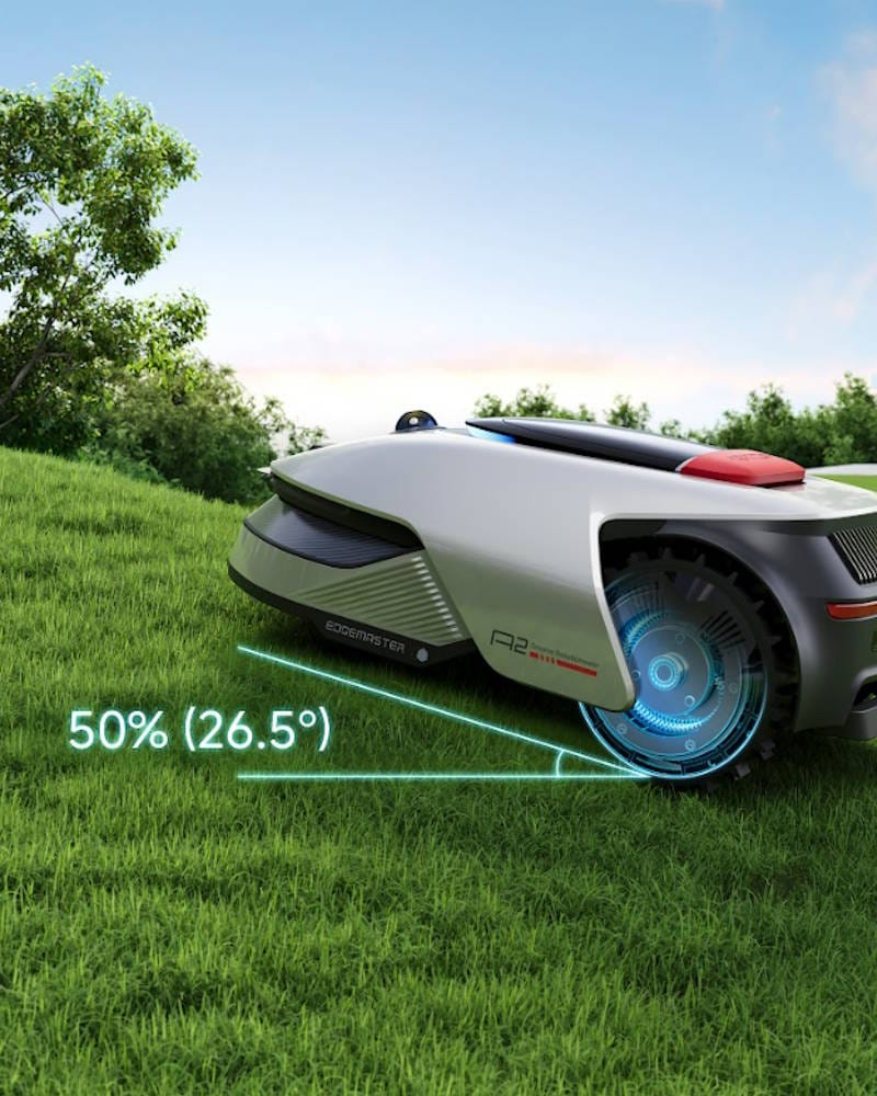 Dankzij EdgeMaster-technologie schuift de maaischijf van de Dreame A2 automatisch uit zodat de afstand tot de rand van het gazon kleiner blijft dan 5 cm. Hierdoor wordt er meer gras meegenomen langs muren, bloembedden en tuinpaden. Dit zorgt voor een strakker resultaat waarbij je niet of nauwelijks nog handmatig hoeft bij te werken.