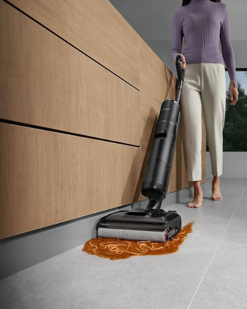 Dankzij de brede rolborstel voor dubbele randreiniging kom je met de Dreame H12 Pro FlexLite eenvoudig langs muren, plinten en in nauwe doorgangen van slechts 14 cm breed. De krachtige zuigkracht van 18.000 Pa zorgt ervoor dat stof, vuil en vloeistoffen effectief worden verwijderd. Het slimme ontwerp met 180° platliggend bereik zorgt er bovendien voor dat je gemakkelijk kunt schoonmaken op lage plekken zoals onder meubels.