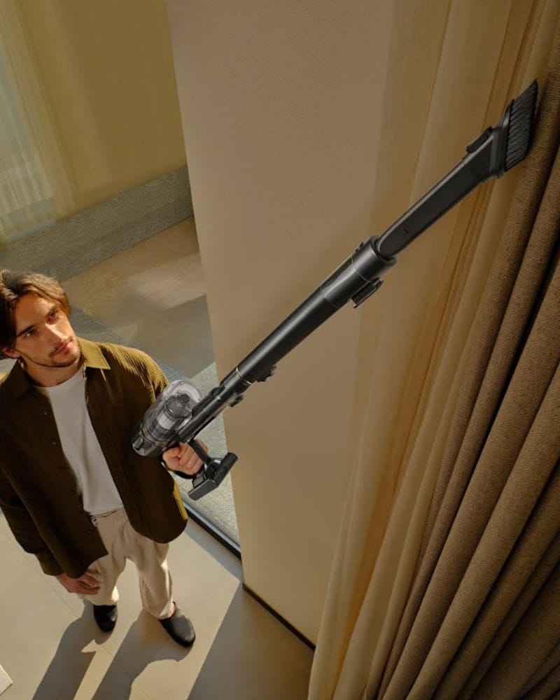 De Dreame V20 Pro beschikt over een flexibel ontwerp dat 90° kan vouwen en in vier standen is uit te schuiven. Hierdoor manoeuvreer je moeiteloos onder lage meubels of op andere moeilijk bereikbare plekken. Het lichte gewicht van slechts 1,6 kg maakt het schoonmaken bovendien comfortabel en minder belastend, ook wanneer je bijvoorbeeld hoge plekken wilt bereiken zoals bij het plafond.