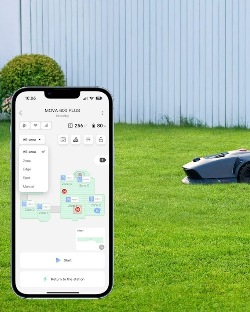 Dankzij de krachtige 4 Ah accu en een snellere oplaadtijd van circa 60 minuten is de Mova 600 Plus geschikt voor een werkterrein tot 600 m2. De robuuste wielen en aandrijving maken het mogelijk om hellingen tot 45% te overwinnen waardoor de robot geschikt is voor uiteenlopende tuinen. Met meerdere modi, no-go zones en een instelbare maaihoogte van 2 tot 6 cm biedt de Mova 600 Plus een betrouwbare en flexibele oplossing voor jouw gazon.