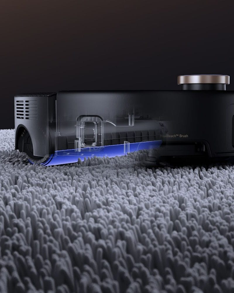 De MaxiReach uitzetbare zijborstel en uitzetbare dweilborstel zorgen voor een betere reiniging langs randen, plinten en in hoeken. Zelfs vuil op moeilijk bereikbare plekken wordt zo effectief verwijderd voor een maximale dekking. De FlexScope intrekbare laserkop zorgt er bovendien voor dat de Mova Z60 Ultra Roller slechts 9,6 cm hoog is en hierdoor ook onder veel meubels kan schoonmaken.