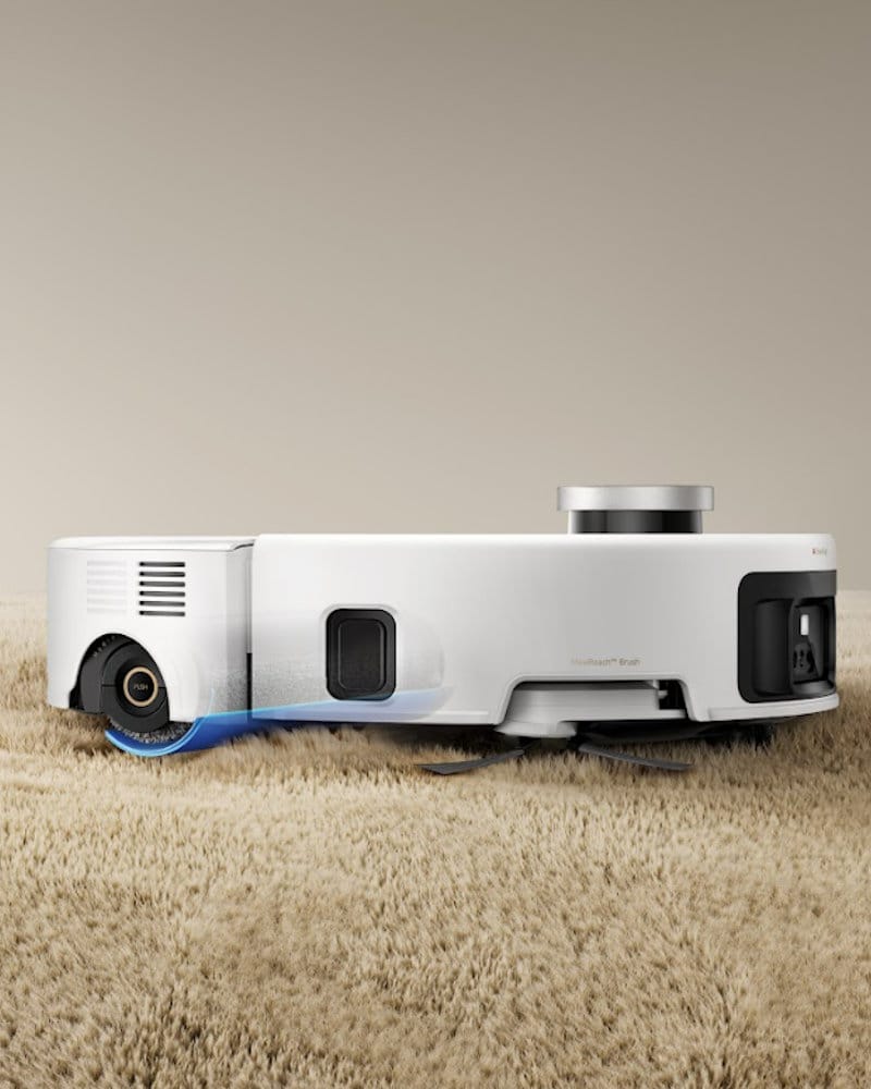 Met de MaxiReach uitzetbare zijborstel én dweilborstel pakt deze robot vuil mee langs randen, plinten, hoeken en meubelpoten. De FlexScope-technologie zorgt ervoor dat de laser kan indalen en de hoogte van de robot dynamisch wordt aanpast voor een beter bereik onder meer meubels.