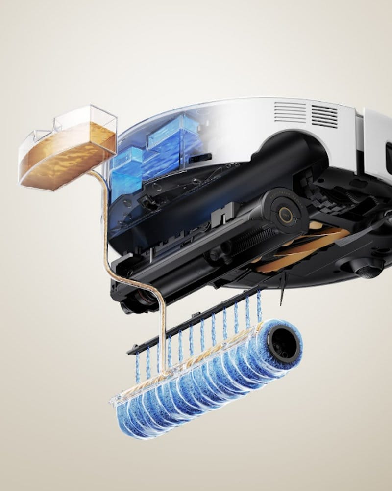 Het effectieve HydroForce-dweilsysteem zorgt voor een constante aanvoer van schoon water tijdens het dweilen. De rol wordt continu gespoeld en vuil water wordt direct afgevoerd wat resulteert in een schonere vloer en betere hygiëne ten opzichte van traditionele robots zonder deze waterstroom.